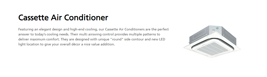 Temperature and Zone Control: Some models offer individual temperature and airflow control >for each cassette unit, allowing for customized comfort in different areas of the room.