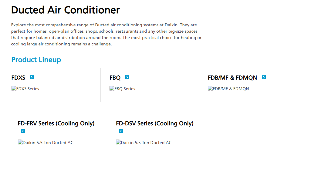 "Ductable AC," also known as a "Ducted AC" or "Ducted Split AC." A ductable air conditioner is a type of cooling system that uses a network of ducts to distribute conditioned air throughout a building or space. This system is often used in larger residential or commercial settings where centralized air conditioning is desired.