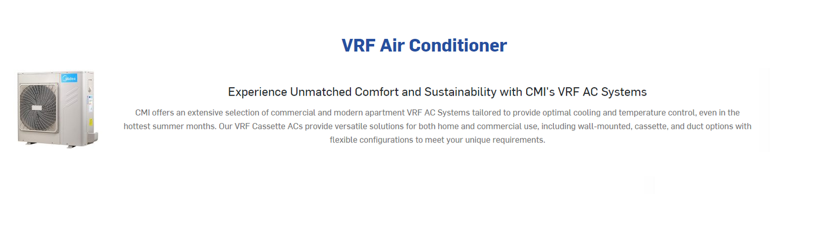 Wide Capacity Range: VRV systems come in a variety of sizes and capacities, making them suitable for small residential buildings to large commercial complexes.